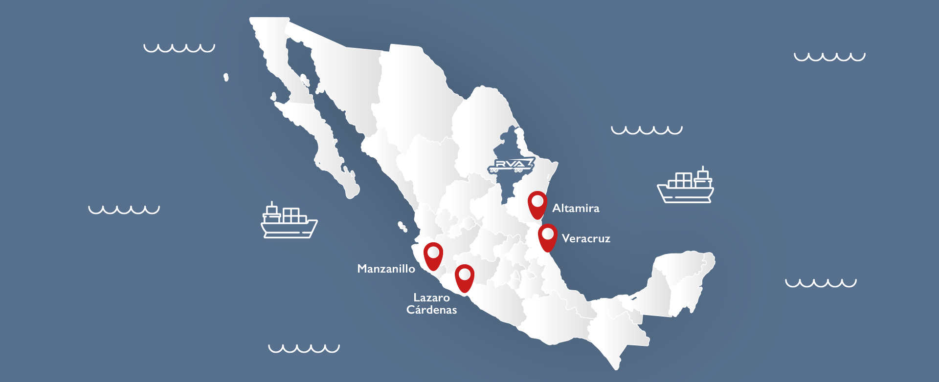 including Altamira, Manzanillo, Lázaro Cárdenas, and Veracruz.